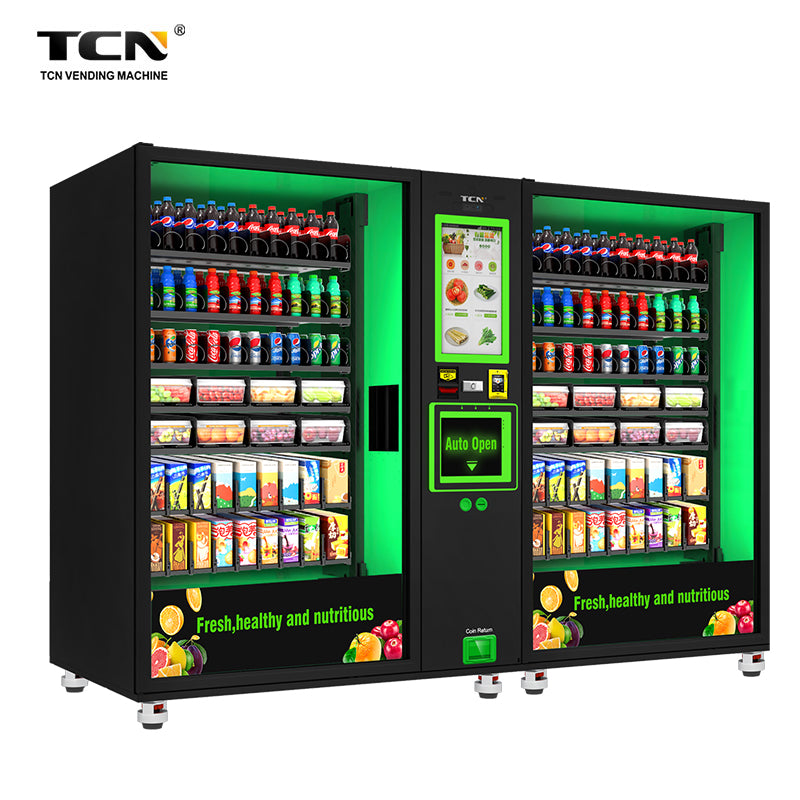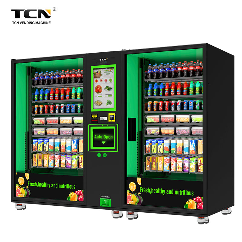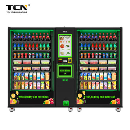 Der Foodautomat 11G Premium Duo-Lift-Line mit 22-Zoll-Touchscreen (Master-Slave-System TCN-CFS-11G(V22) + TCN-CFS-11V-R) ist die High-End-Lösung für den vollautomatischen Verkauf frischer Lebensmittel.