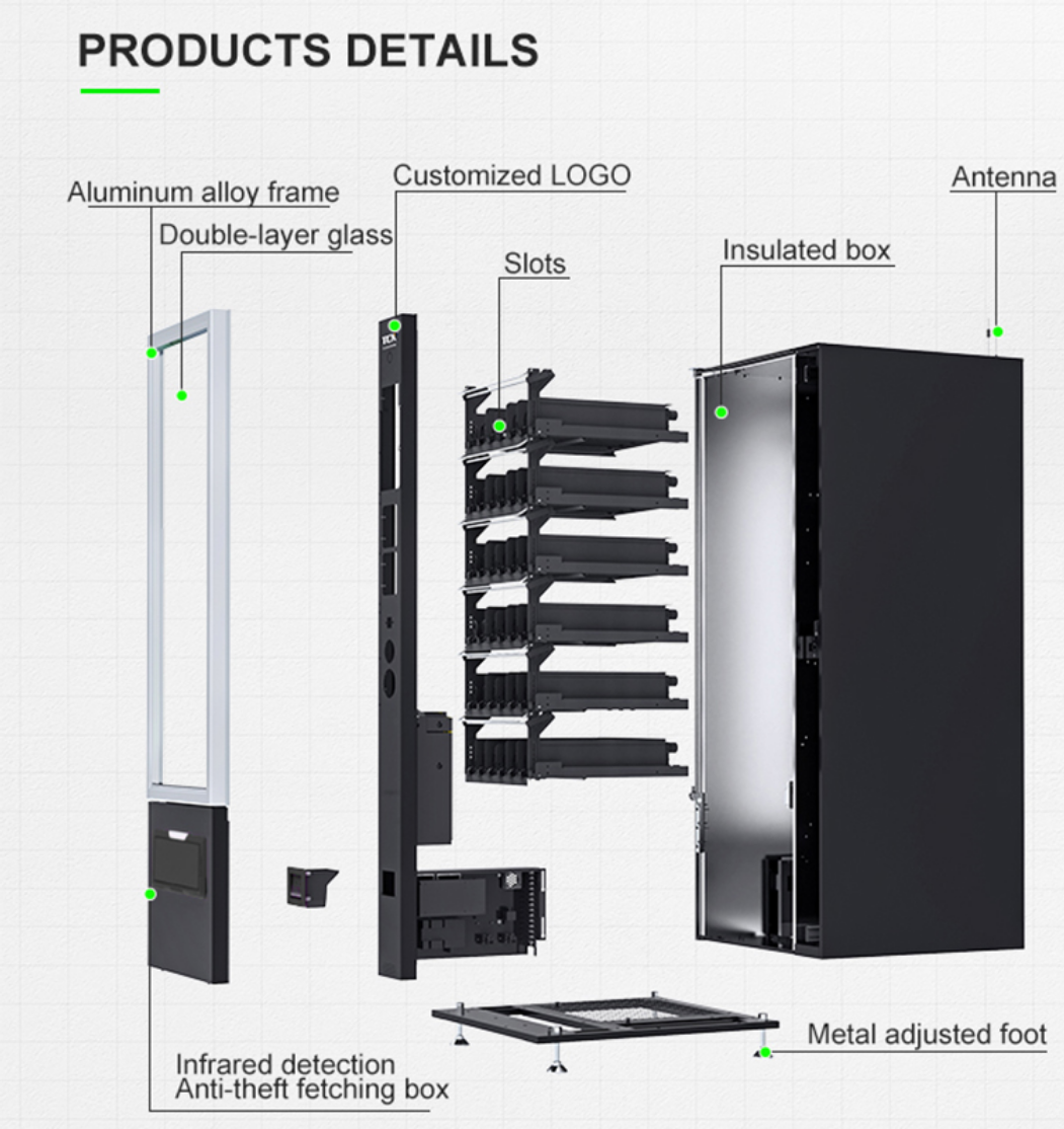Mit bis zu 60 individuell einstellbaren Slots bietet der Automat maximale Flexibilität bei der Auswahl und Präsentation von Snacks und Getränken.