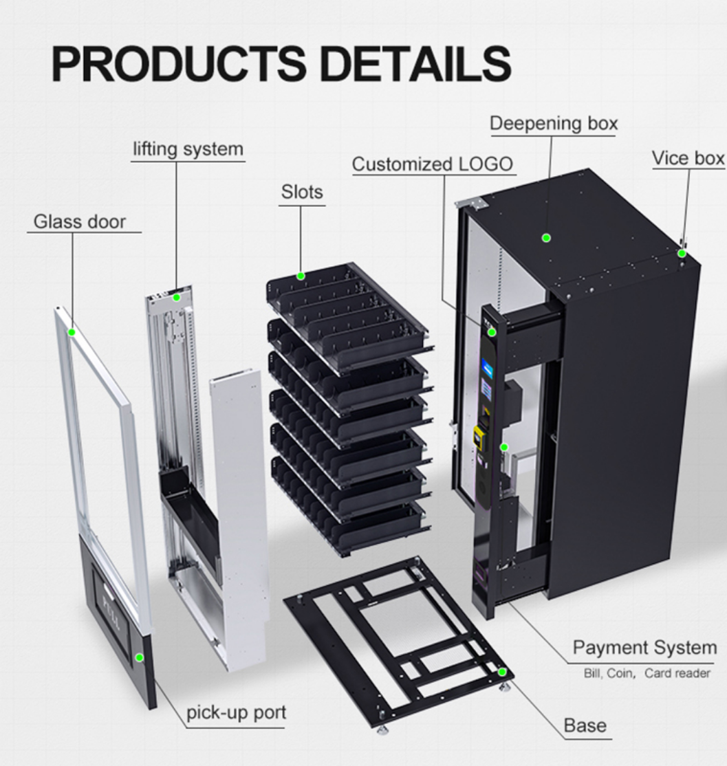 Mit bis zu 60 individuell konfigurierbaren Slots und Platz für bis zu 300 Produkte bietet der Automat maximale Kapazität auf kompakter Fläche.