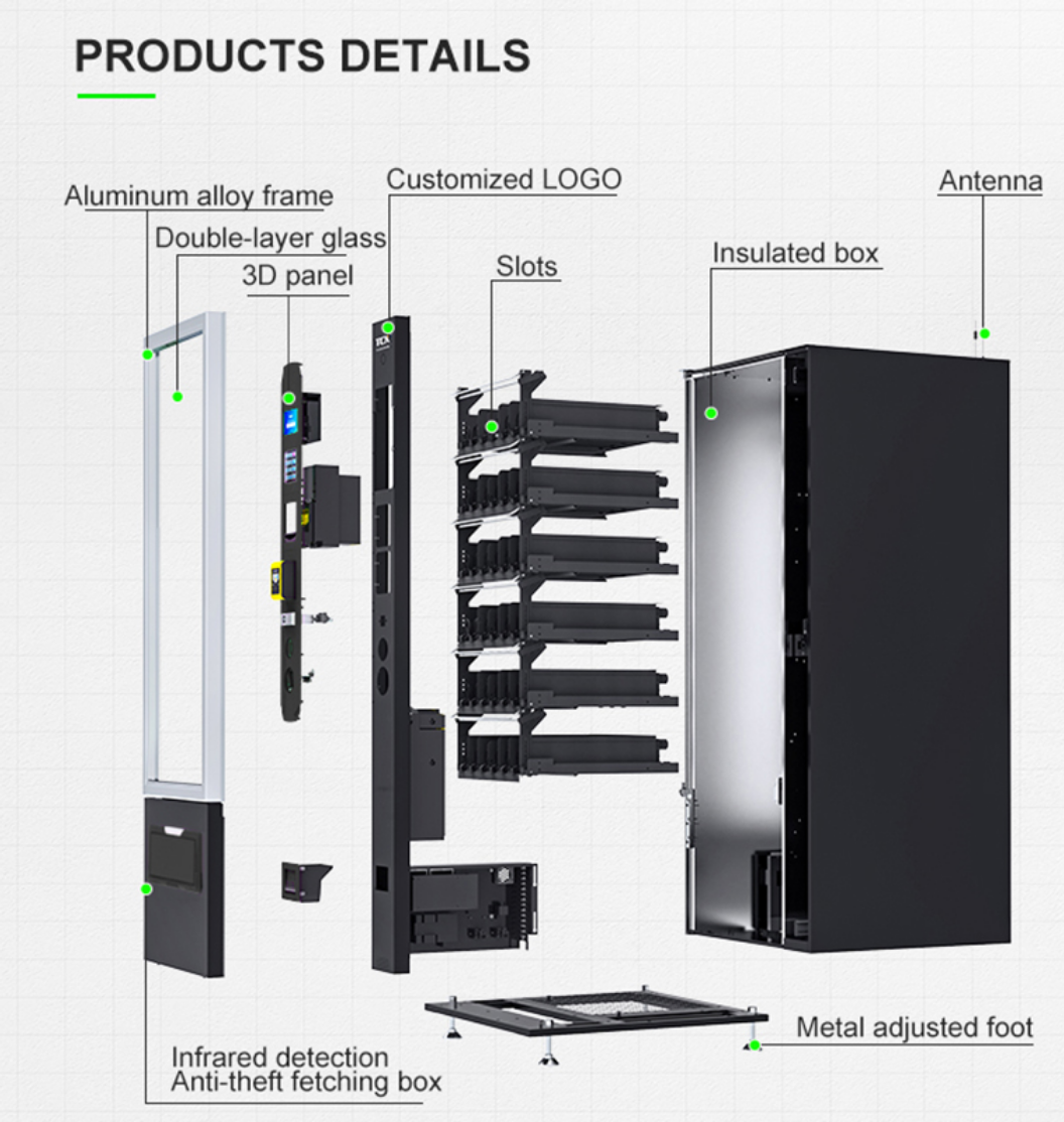 Mit bis zu 48 individuell einstellbaren Slots bietet er dennoch eine beeindruckende Auswahl an Snacks, Getränken und kleinen Artikeln.